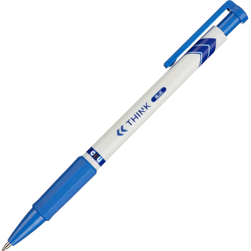 Ручка синяя шариковая автоматическая Deli Think с диаметром пишущего узла 0,7 мм. Мягкая каучуковая подушечка предотвратит скольжение пальцев при письме. Цвет грип-зоны и клипа соответствует цвету чернил.Удобный клип позволяет фиксировать ручку на ежедневниках, блокнотах и карманах одежды. В производстве ручек используются чернила пониженной вязкости, гарантирующие необыкновенно мягкое и четкое письмо на любой бумаге. Высококачественные чернила позволяют увеличить продолжительность письма и сократить их расход. Ручка со стреловидным наконечником пишет очень тонко и аккуратно. Длина непрерывной линии составляет 1000 м при толщине 0,35 мм, что является высоким показателем в своей категории.