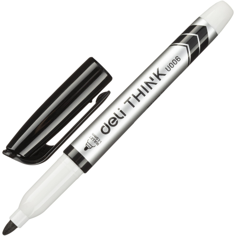 Маркер черный для досок Think в прочном пластиковом корпусе. Чернила на водной основе с содержанием спирта. Стираются сухой губко, не протекает при перепаде давления. Предназначен для письма на досках с магнитно-маркерной поверхностью. Форма наконечника круглая. Позволяет провести линию толщиной от 1,5 до 3 мм. Снятый колпачок не потеряется благодаря тому, что во время работы его можно надевать на верхнюю часть маркера.