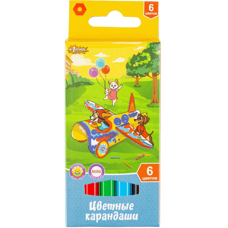 Укороченные карандаши цветные №1School Шустрики. Цветные, заточенные, для рисования на бумаге, изготовлены из качественной древесины, ударопрочные, легко затачиваются, не оставляя заусенцев. Шестигранная форма корпуса карандаша делает его устойчивым на поверхности стола. Длина корпуса карандаша 88 мм. Диаметр грифеля 2,65 мм. Поставляется в картонной упаковке с европодвесом. Предназначены для творчества детей от 3-х лет. Нетоксичны.