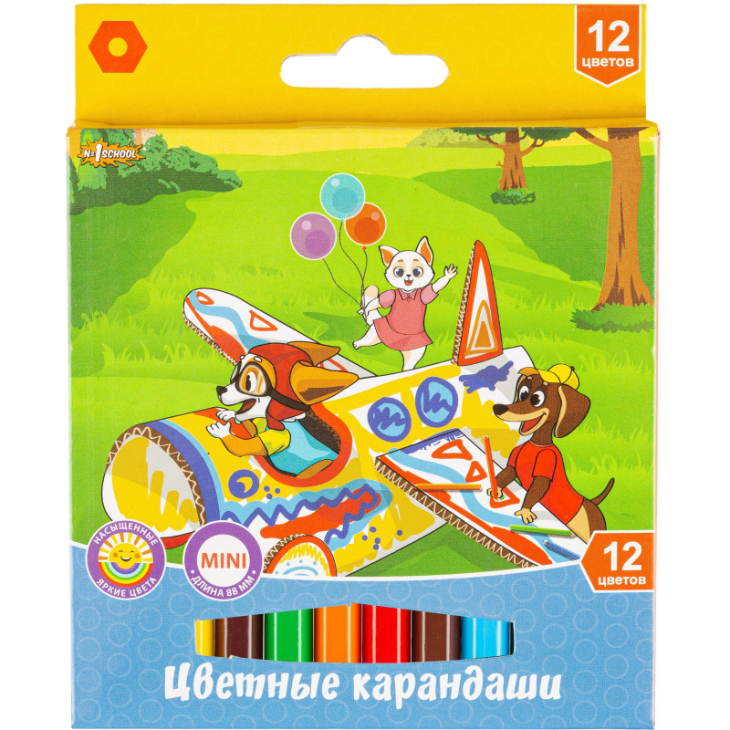 Укороченные карандаши цветные №1School Шустрики. Цветные, заточенные, для рисования на бумаге, изготовлены из качественной древесины, ударопрочные, легко затачиваются, не оставляя заусенцев. Шестигранная форма корпуса карандаша делает его устойчивым на поверхности стола. Длина корпуса карандаша 88 мм. Диаметр грифеля 2,65 мм. Поставляется в картонной упаковке с европодвесом. Предназначены для творчества детей от 3-х лет. Нетоксичны.