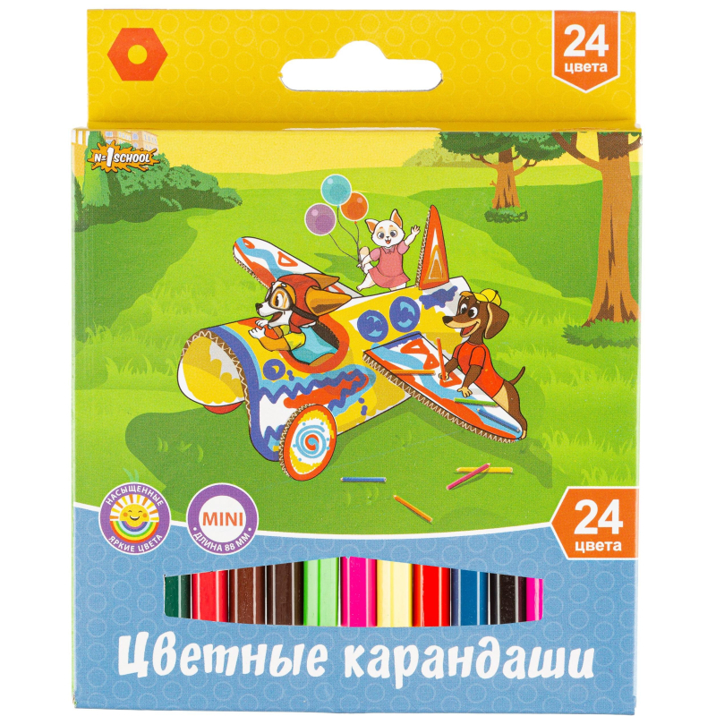 Укороченные карандаши цветные №1School Шустрики. Цветные, заточенные, для рисования на бумаге, изготовлены из качественной древесины, ударопрочные, легко затачиваются, не оставляя заусенцев. Шестигранная форма корпуса карандаша делает его устойчивым на поверхности стола. Длина корпуса карандаша 88 мм. Диаметр грифеля 2,65 мм. Поставляется в картонной упаковке с европодвесом. Предназначены для творчества детей от 3-х лет. Нетоксичны.