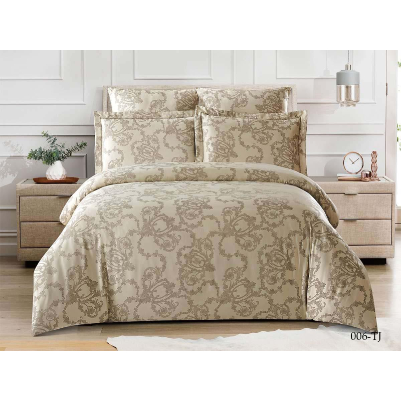 В комплект постельного белья Cleo входят: - простынь 230x250 см; - пододеяльник 180x210 см; - 2 наволочки 50x70 см; - 2 наволочки 70x70 см. Коллекция постельного белья Tencel Jacquard - это современная ткань - тенсел. Этот уникальный текстильный материал получается из целлюлозы натурального эвкалиптового дерева. В процессе производства все полезные и защитные свойства эвкалипта в полной мере передаются получаемому волокну. Постельное белье из Tencel обладает защитным эффектом, уничтожает болезнетворные бактерии, обеззараживает спальное ложе и тем самым оберегает ваш ночной отдых. Тенсел - редкая изысканная и благородная ткань. Она хорошо впитывает и испаряет влагу, пропускает воздух, обладает высокой прочностью, имеет приятный мягкий блеск, присущий натуральному шелку. Жаккард - сложное переплетение нитей, в процессе такой технологии поверхность становится идеальной ровной и без ворсистой, приятная на ощупь, мягкая и шелковистая. Жаккард - это непревзойденная фактура - подарит необыкновенную негу во время сна, а уникальные дизайны создадут королевский интерьер вашего дома.