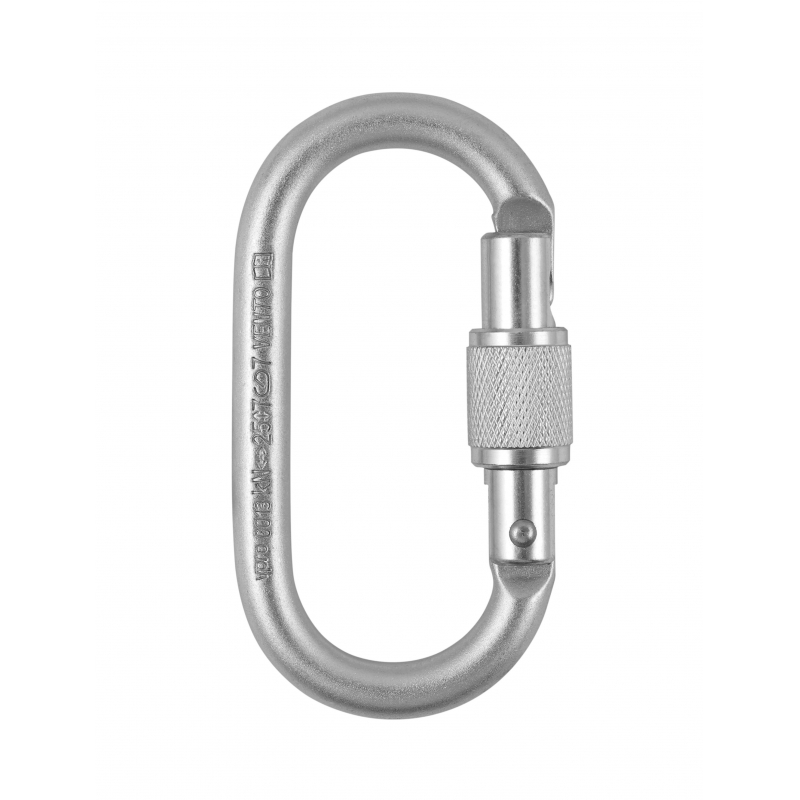 Карабин предназначен для соединения между собой отдельных элементов и компонентов системобеспечения безопасности. Самозакрывающийся симметричный соединительный карабин класса В овальной формы. Фиксатор запорного элемента карабина выполнен в виде резьбовой муфты, требующей не менее 4полных оборотов от полностью завинченного вверх положения до расцепления резьбы.