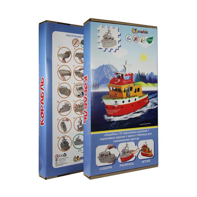 Набор для творчества Конструктор-Раскраска "Корабль" с красками и кистью в гофрокоробе в комплекте. Так же в набор входит: 1. 51 деталь 2. Краски и кисть 3. Таблица для смешивания цветов