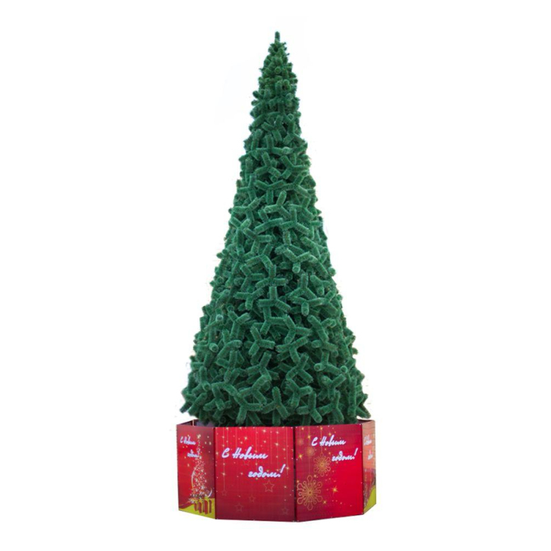 Сосна ствольная уличная "Альпийская" 4 м. Искусственная ель представляет собой сборно-разборную конструкцию, состоящую из ствола, диагоналей и горизонталей основания, веток из искусственной хвои. Ствол выполнен из стальной металлической трубы. На трубе ствола имеются приспособления в виде стальных труб диаметром 10 мм, которые предназначены для крепления ветвей. Ветви из искусственной хвои изготовлены из стальной проволоки и лески ПВХ. Подставка выполнена из металла (ограждение в комплект не входит, приобретается отдельно).