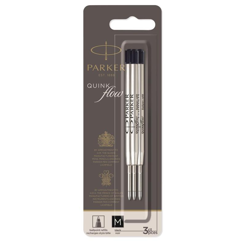 Новый формат. Три стерженя для шариковых ручек Parker с чернилами черного цвета, толщина линии - 1 мм, длина стержня - 98 мм. Обеспечивает мягкое письмо, чернила быстро высыхают, устойчивы к свету и влаге. Новое поколение стержней Quink c усовершенствованным пишущим узлом (шариком) и формулой чернил. Более гладкое письмо, быстросохнущая паста, точный контроль расходования чернил. Никелево-палладиевый пишущий узел (труба подачи и шарик). Подходит для всех шариковых ручек Parker.