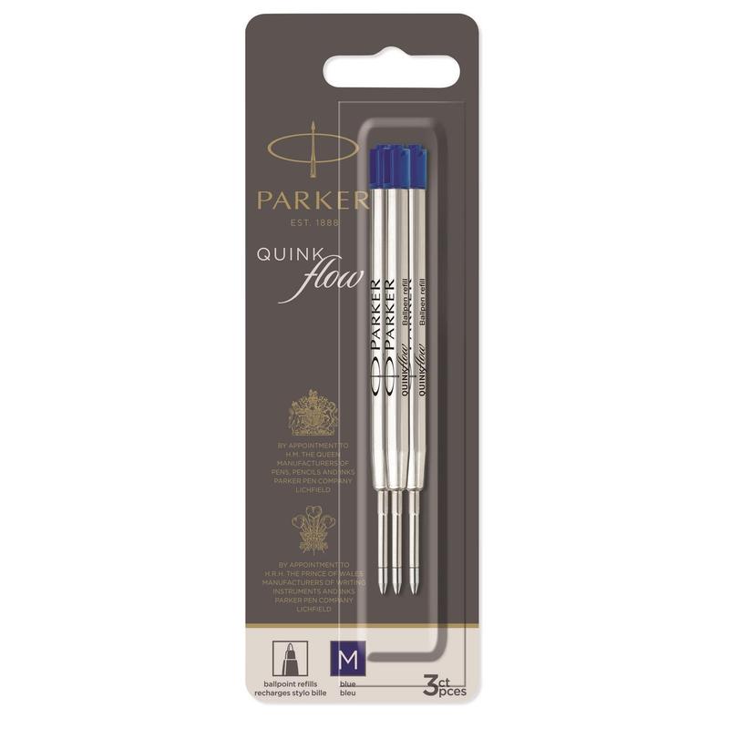 Новый формат. Три стерженя для шариковых ручек Parker с чернилами синего цвета, толщина линии - 1 мм, длина стержня - 98 мм. Обеспечивает мягкое письмо, чернила быстро высыхают, устойчивы к свету и влаге. Новое поколение стержней Quink c усовершенствованным пишущим узлом (шариком) и формулой чернил. Более гладкое письмо, быстросохнущая паста, точный контроль расходования чернил. Никелево-палладиевый пишущий узел (труба подачи и шарик). Подходит для всех шариковых ручек Parker.