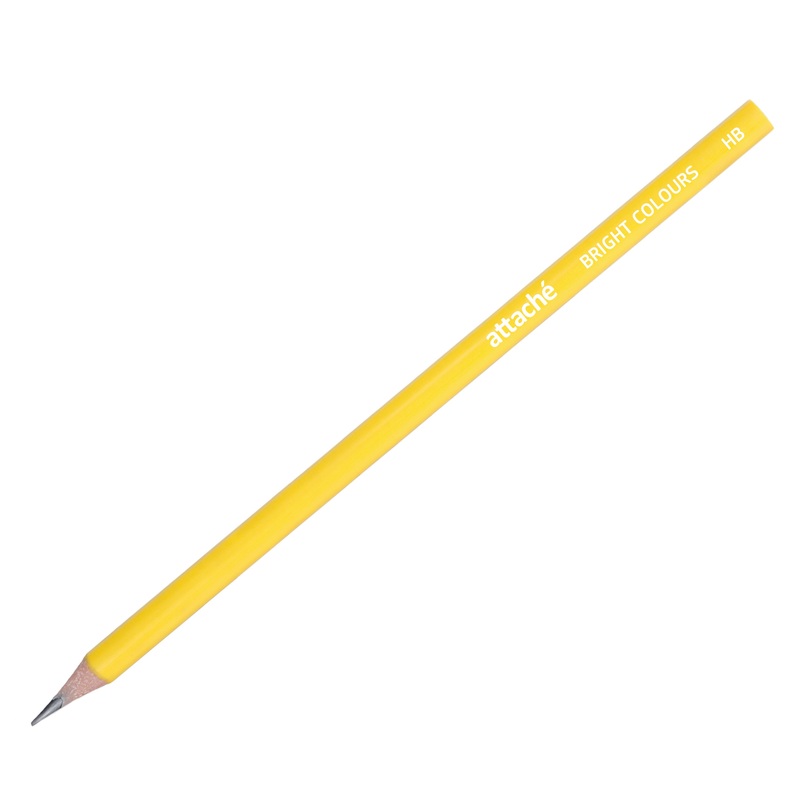 Карандаш чернографитный Attache в желтом пластиковом трехгранном корпусе. Поставляется заточенным, без ластика. Твердость - НВ. Материал ствола - полистирол. Длина стержня - 173-175 мм. Цвет стержня - черный. Диаметр грифеля - 1,8 мм.
