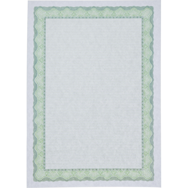 Сертификат-бумага предназначена для печати сертификатов, грамот и дипломов на любых принтерах. Изготавливается из офсетной бумаги. Формат А4, в пачке 50 листов, плотностью 120 г/кв.м, с рамкой зеленого цвета.