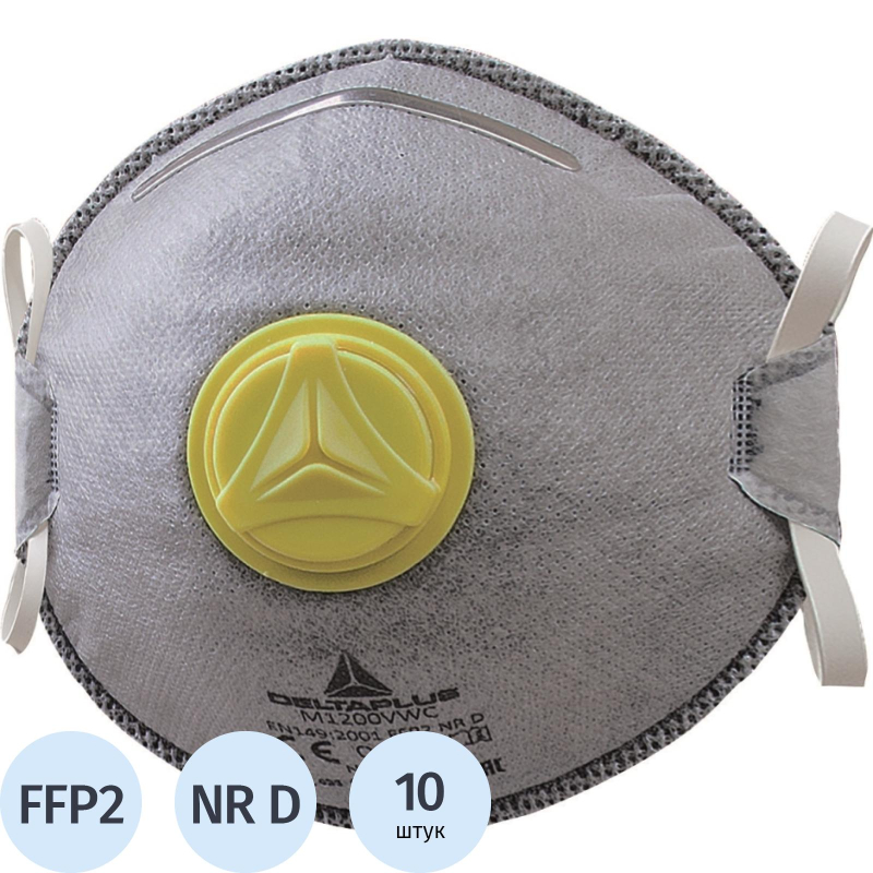 Респиратор одноразовый из нетканого синтетического волокна, уровень защиты - FFP2 (до 12 ПДК). С активным углем для защиты от органических паров и испарений с концентрации менее 12 ПДК. Защита от вредных испарений, дымов (например, сварочных дымов). Респиратор чашеобразной формы. Носовой зажим для регулировки прилегания. Мягкая подкладка под носовым зажимом. Высокоэффективный клапан выдоха. Оголовье из эластичной резинки. Дополнительно испытаны на засорение доломитом. В упаковку входит 10 респираторов.