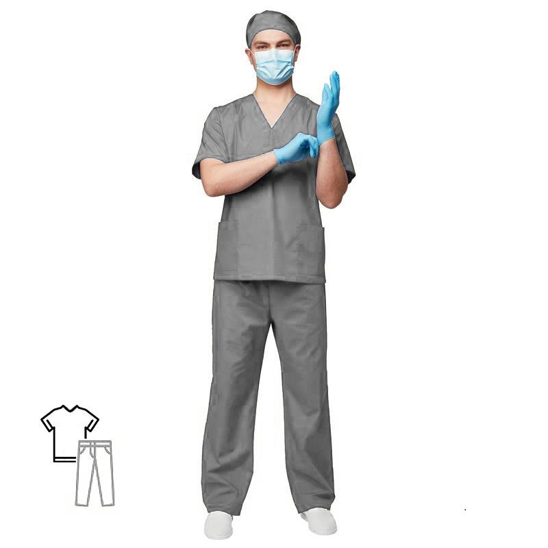 Костюм хирурга универсальный м05-КБР серого цвета. Размер: 60-62. Рост: 182-188. Изготовлен из ткани ТиСи. Состав - 65% полиэстера и 35% хлопка. Плотность материала составляет 120 г/кв. м, благодаря чему обеспечивается легкость изделия. Ти-Си - материал, приятный на ощупь, гигиеничен и долговечен. Не мнется, легко и быстро стирается, быстро сохнет. Долго сохраняет свой первоначальный яркий цвет. Ткань 'дышит', благодаря входящему в состав хлопку, имеет повышенный срок службы и проста в уходе, благодаря полиэстеру. Медицинский костюм состоит из куртки и брюк, подходит и для женщин, и для мужчин. Куртка с коротким рукавом и нагрудным карманом, свободный покрой обеспечивает удобство в работе. Брюки прямые на резинке. Униформа рекомендована для сферы красоты и здоровья: медицинские учреждения, центры.