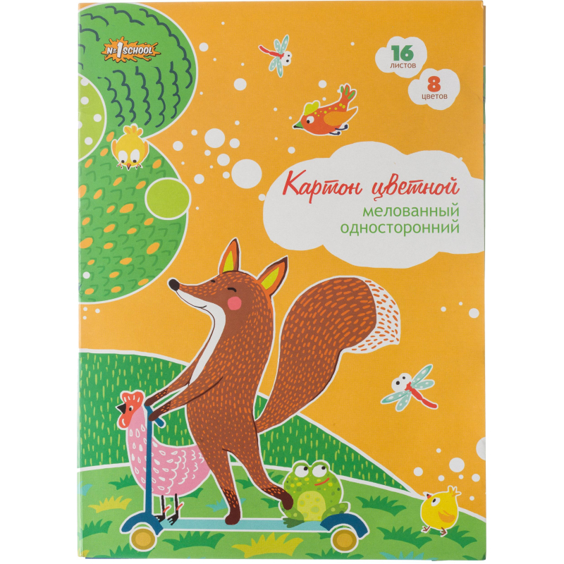 Картон цветной №1 School 16л,8цв,А4,мелов, в папке