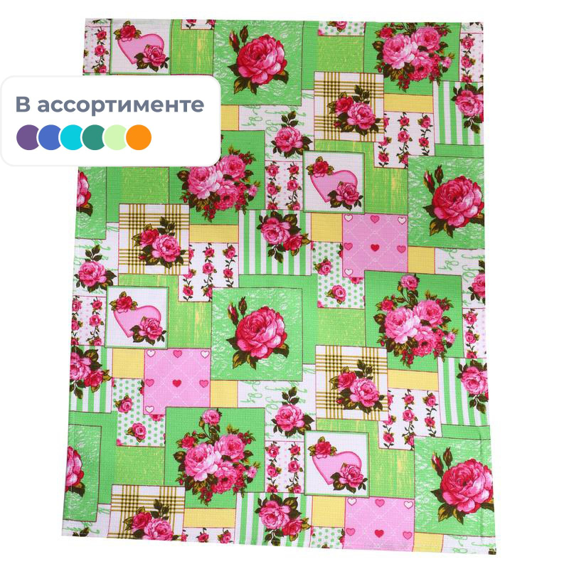 Полотенце - необходимый предмет обихода современного человека. Они универсальны, поэтому используются в каждой семье и не в одном экземпляре. Полотенце отлично впитывает влагу, масла, легко стирается и не оставляет никаких ворсинок на обрабатываемой поверхности. Самое значимое достоинство вафельных полотенец - натуральность, поскольку они состоят из 100 % хлопка. Размер: 56х100 см. Внимание! Товар поставляется в различных вариантах дизайна без возможности выбора.