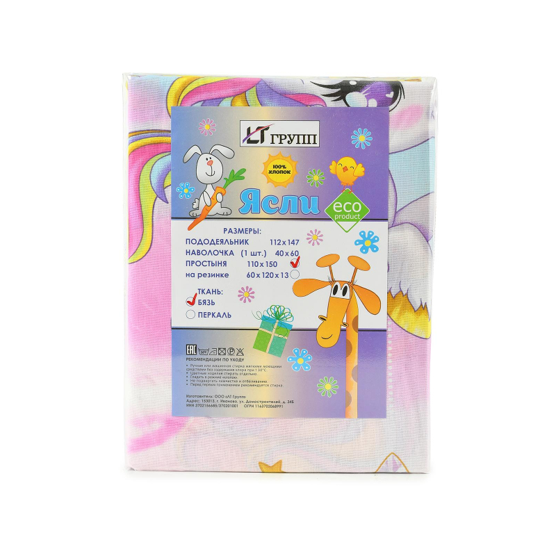 Постельное белье для самых маленьких! Для детей от рождения и до 3-х лет. Превосходное качество ткани обеспечит безопасность и комфорт ребенку. 100% натуральный мягкий хлопок, не вызывающий аллергии. Интересный дизайн с множеством мелких детских детальных рисунков. В комплект входит: - простынь 110x150 см; - пододеяльник 110x147 см; - 1 наволочка 40x60 см.