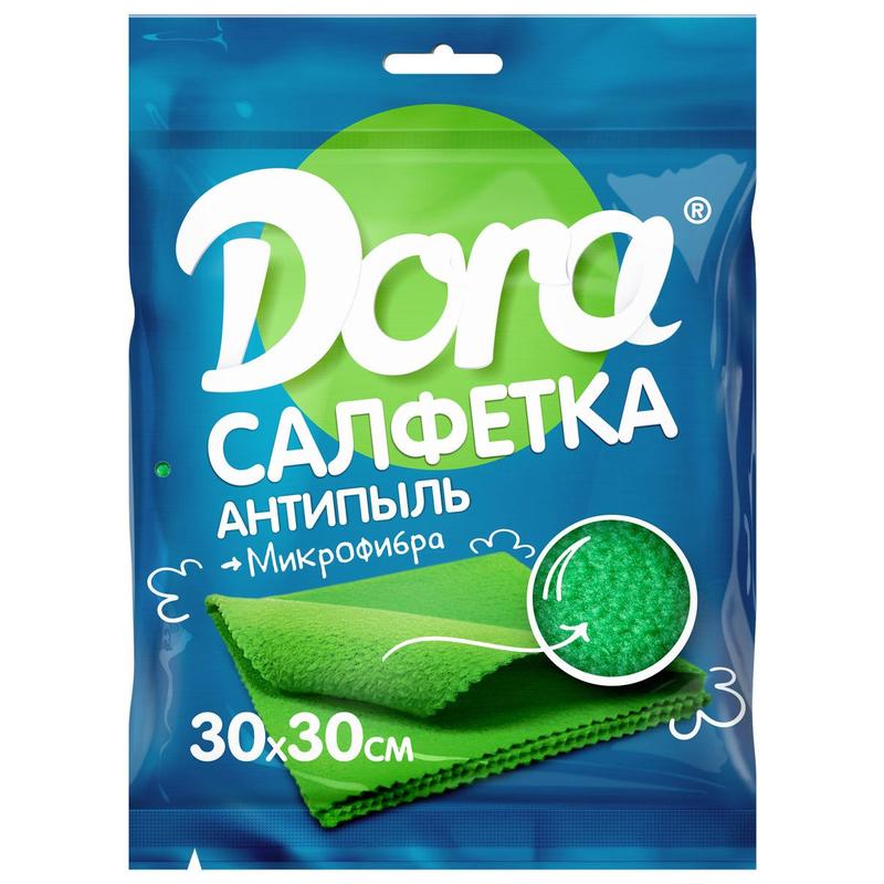Салфетка хозяйственная Dora Антипыль микрофибра 30х30см зеленый