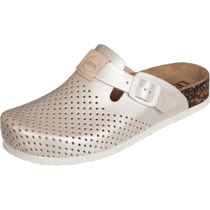 Сабо Leon перламутрового цвета. Размер: 39. Материал верха обуви: натуральная кожа. Метод крепления подошвы: литьевой. Подносок: термопластичный. Подошва: полиуретан. Обувь Leon позволит правильно распределить нагрузку в зоне стопы и подарит комфорт во время использования. Подошва обуви изготовлена из прочного противоскользящего полиуретана, надежно скрепляет все компоненты и делает походку уверенной. Натуральная пробка в сочетании с современными материалами идеально повторяет форму стопы. Стелька Memory Gel, имеющая высокие амортизационные свойства, благодаря чему снижает нагрузку на голеностопный сустав и позвоночник, предотвращая боли в спине. Верх стельки выполнен из мягкой натуральной кожи. Система "Антишок" уменьшает ударную нагрузку в пяточной части, обладает противоскользящими свойствами, что значительно снижает нагрузку на суставы и позвоночник, уменьшая чувство усталости и дискомфорта при ходьбе.