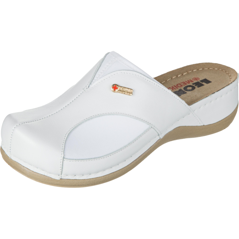 Сабо Leon белые цвета. Размер: 38. Материал верха обуви: натуральная кожа. Метод крепления подошвы: литьевой. Подносок: термопластичный. Подошва: полиуретан. Обувь Leon позволит правильно распределить нагрузку в зоне стопы и подарит комфорт во время использования. Подошва обуви изготовлена из прочного противоскользящего полиуретана, надежно скрепляет все компоненты и делает походку уверенной. Натуральная пробка в сочетании с современными материалами идеально повторяет форму стопы. Стелька Memory Gel, имеющая высокие амортизационные свойства, благодаря чему снижает нагрузку на голеностопный сустав и позвоночник, предотвращая боли в спине. Верх стельки выполнен из мягкой натуральной кожи. Система "Антишок" уменьшает ударную нагрузку в пяточной части, обладает противоскользящими свойствами, что значительно снижает нагрузку на суставы и позвоночник, уменьшая чувство усталости и дискомфорта при ходьбе.