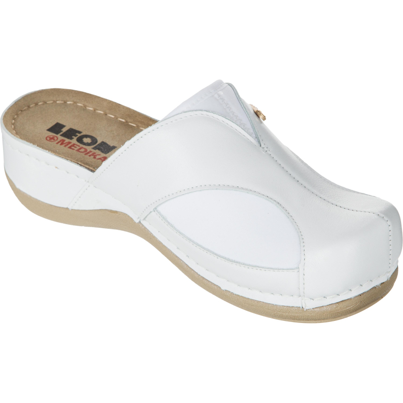 Сабо Leon белые цвета. Размер: 39. Материал верха обуви: натуральная кожа. Метод крепления подошвы: литьевой. Подносок: термопластичный. Подошва: полиуретан. Обувь Leon позволит правильно распределить нагрузку в зоне стопы и подарит комфорт во время использования. Подошва обуви изготовлена из прочного противоскользящего полиуретана, надежно скрепляет все компоненты и делает походку уверенной. Натуральная пробка в сочетании с современными материалами идеально повторяет форму стопы. Стелька Memory Gel, имеющая высокие амортизационные свойства, благодаря чему снижает нагрузку на голеностопный сустав и позвоночник, предотвращая боли в спине. Верх стельки выполнен из мягкой натуральной кожи. Система "Антишок" уменьшает ударную нагрузку в пяточной части, обладает противоскользящими свойствами, что значительно снижает нагрузку на суставы и позвоночник, уменьшая чувство усталости и дискомфорта при ходьбе.