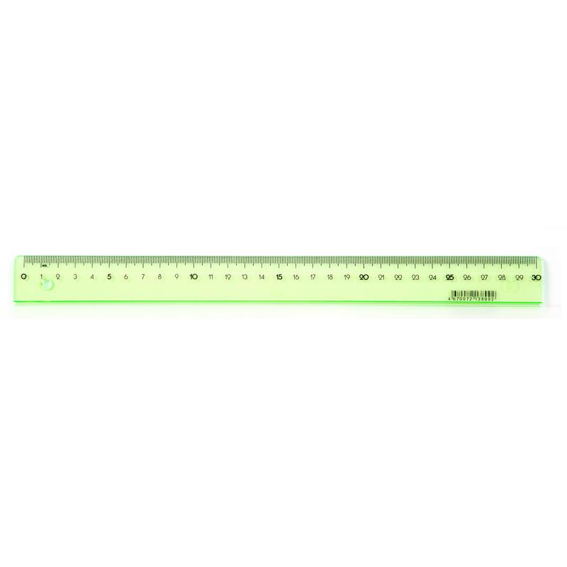 Линейка Attache Bright Colours 30-сантиметровая выполнена из прозрачного зеленого полистирола. Линейка имеет четкую миллиметровую шкалу делений и штрихкод, способ нанесения - тампопечать. Удобна для измерения длины и черчения. Устойчива к деформациям.