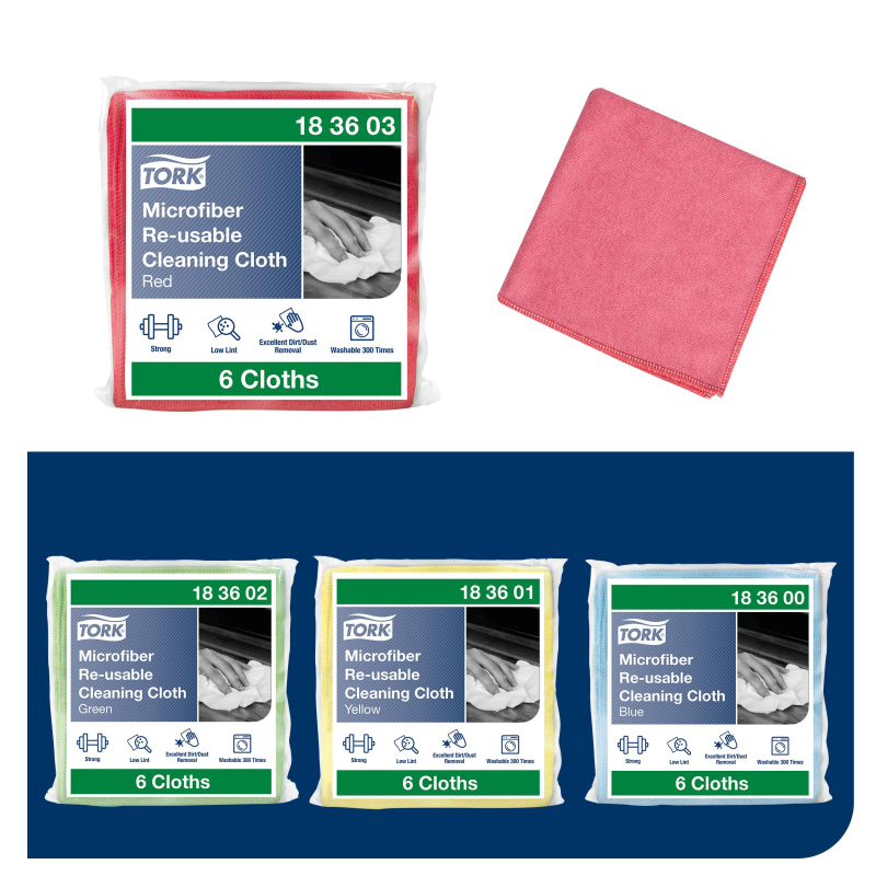 Протирочный материал Tork 183603 микрофибра красный (8 пачек по 6 листов). Tork микрофибра многоразового использования представляет собой высококачественную чистящую ткань из микроволокна. Этот продукт можно стирать и использовать повторно. Безворсовые материалы обеспечивают превосходные результаты очистки твердых поверхностей
