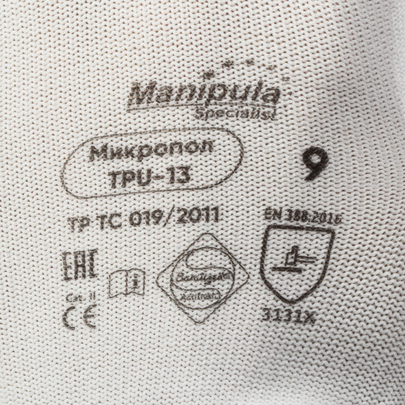 Перчатки Микропол TPU-13 из нейлона с покрытием из полиуретана предназначены для защиты рук от порезов, от механических воздействий, от нефти и нефтепродуктов. Размер: 9, L. Длина перчаток: 250 мм. Число нитей: 13. Класс вязки: 13. Бесшовная "дышащая" основа из нейлона с плотностью вязки 13 петель на дюйм обеспечивает великолепную тактильную чувствительность. В покрытии не используется силикон, оставляющий кратеры на поверхности изделия. Полиуретановое покрытие дает эффект "липкости", что исключает проскальзывание предметов. Зона покрытия обеспечивает стойкость к маслам, нефтепродуктам, углеводородам, истиранию и порезам. Безворсовая основа из нейлона обеспечивает чистоту продукта. Анатомическая форма перчаток снижает усталость рук. Двойной оверлок с цветовой индикацией размера. Для предотвращения возникновения микробной среды и устранения неприятных запахов после производственного процесса перчатка прошла антибактериальную обработку Sanitized Actifresh. Эксплуатационные уровни EN: EN388 - 4131X. Защитные свойства ТР ТС: Ми Мп Нс Нм. Цвет на изображении товара в интернет-магазине или в печатном каталоге может отличаться от оригинала из-за особенностей цветопередачи монитора.