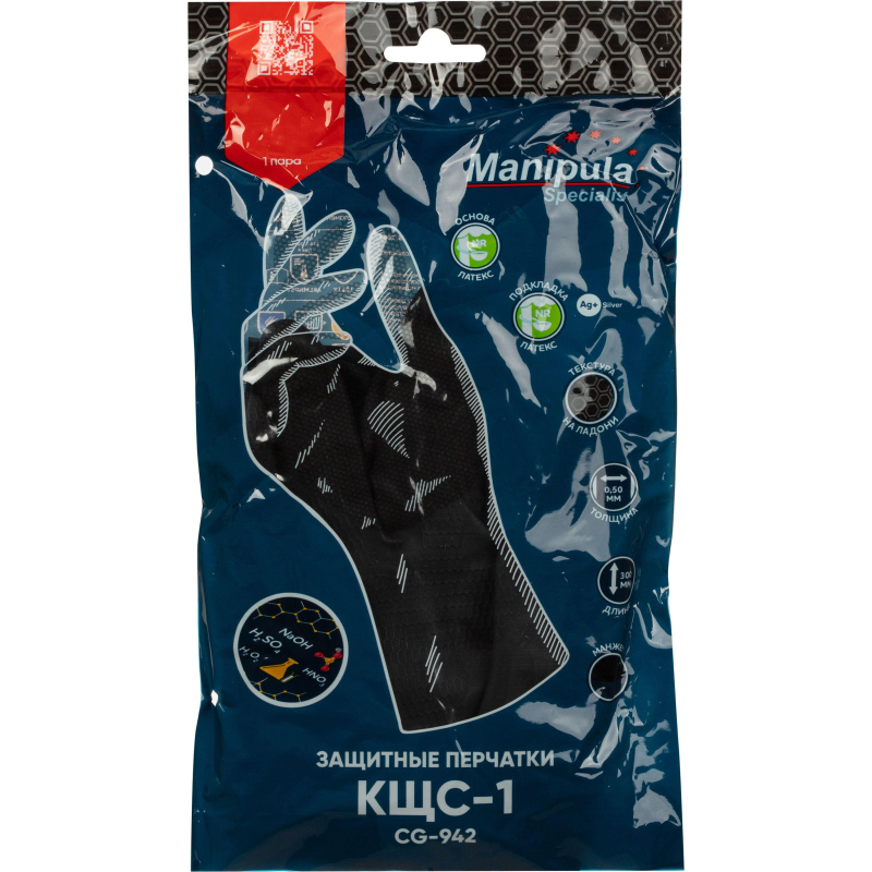 Перчатки КЩС-1 L-U-03 - двухслойные латексные герметичные перчатки, стойкие к кислотам и щелочам средних концентраций, органическим растворителям (этанол, ацетон), растительным жирам. Размер: 9, L. Длина перчаток: 300 мм. Внутренняя поверхность обработана ионами серебра по технологии Silver. Хлорирование поверхности для увеличения механической прочности и снижения аллергических реакций на латексные протеины. Текстура рабочей поверхности "ромб" обеспечивает отличный сухой и влажный захват. Допущены к контакту с пищевыми продуктами. Материал покрытия: без покрытия. Внутренняя обработка: ионы серебра Silver. Утеплитель: нет. Подкладка: нет. Манжет: полимер. Эксплуатационные уровни EN: EN388-0021; EN374-АКL. Защитные свойства ТР ТС: Ми, Бм, Вн, К80, Щ50, Он, Нж. Класс риска: 2. Соответствуют регламенту ЕС 1935/2004 (разрешен контакт с пищевыми продуктами). Цвет на изображении товара в интернет-магазине или в печатном каталоге может отличаться от оригинала из-за особенностей цветопередачи монитора.