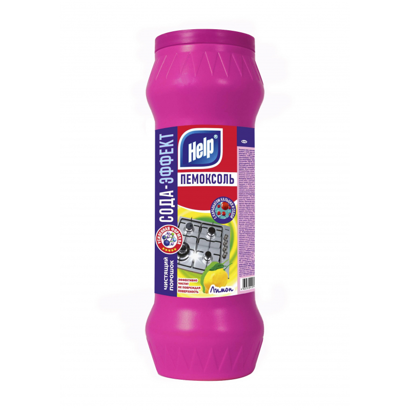 Чистящий порошок Help Пемоксоль Сода-Эффект Лимон 480 г. Назначение:Порошок чистящий Help Сода-Эффект предназначен для чистки эмалированных, керамических, металлических, кафельных, фаянсовых и полимерных поверхностей. Эффективно удаляет жир, нагар, копоть, пригоревшую пищу, пигментные загрязнения и мыльный налет. Устраняет неприятные запахи. Способ применения: Нанести порошок на влажную поверхность, почистить щеткой или губкой и смыть водой. При сильном загрязнении обработку повторить. Меры предосторожности: Не применять для чистки изделий из серебра , окрашенных и лакированных поверхностей. С осторожностью использовать на полированных пластиковых поверхностях . Перед первым применением рекомендуется опробовать средство на незаметном участке поверхности. При попадании в глаза вызывает раздражение! При попадании на кожу вызывает слабое раздражение ! Оказывает раздражающее действие на дыхательные пути! Использовать только по назначению. Не вдыхать! При работе со средством использовать защитные перчатки. После работы тщательно вымыть руки. Хранить в плотно закрытой упаковке, отдельно от пищевых продуктов, в недоступном для детей месте. Избегать попадания средства в глаза и на кожу. В случае попадания средства в глаза и на кожу немедленно промыть их чистой водой. При необходимости обратиться к врачу. Состав: больше или равно 30% карбонат кальция, менее 5% карбонат натрия, менее 5% натрий двуглекислый, менее 5% АПАВ, менее 5% парфюмерная композиция. Условия хранения: Хранить при температуре не ниже -20°С и не выше +40°С. Срок годности: 24 месяца. Дата изготовления и номер партии указаны на упаковке. Относится к сегменту 'суперэконом' - товар с минимальными требованиями к качеству для тех, кто хочет сэкономить. Товар отвечает основным потребительским характеристикам.
