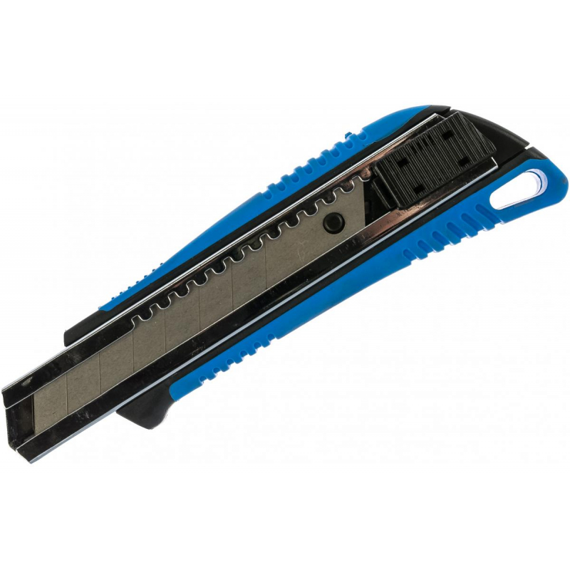 Строительный универсальный нож с двухкомпонентной ручкой и металлической направляющей 18мм используется для разрезания различных строительных материалов, таких как гипсокартон, аквапанель, обои, различные виды пленки, пенополистирол.