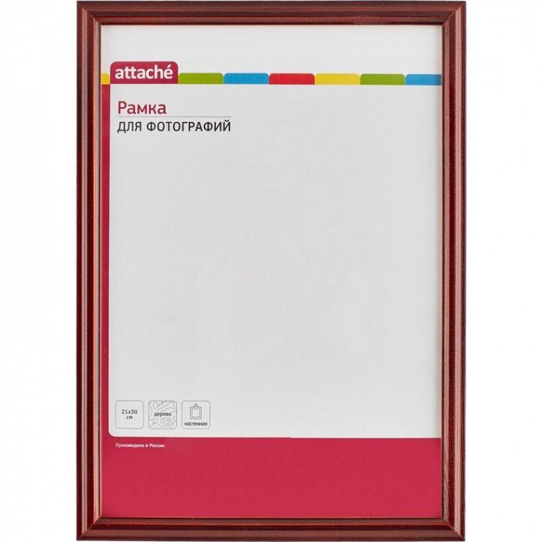 Настенная рамка для сертификатов, дипломов и других демонстрационных материалов Attache изготовлена из деревянного лакированного багета. Оснащена защитным стеклом. Настольное размещение невозможно.
