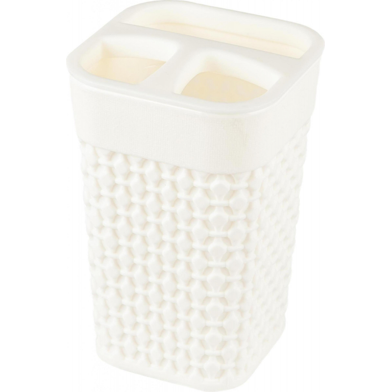 Стакан для зубных щеток Oslo имеет отдельные отверстия для 2-х щеток и пасты и поможет вам организовать пространство в ванной комнате. Аксессуар сделан из безопасного пластика и прекрасно подходит для помещений с традиционно повышенной влажностью и высокими требованиями к гигиеничности. Актуальное плетение, модные цветовые решения и, конечно, скандинавская функциональность - главные отличительные черты коллекции Oslo. Она состоит из корзин для хранения разных литражей, с крышками и без, органайзеров, аксессуаров для ванной. Размеры: 7,5х7,5х11,3 см.
