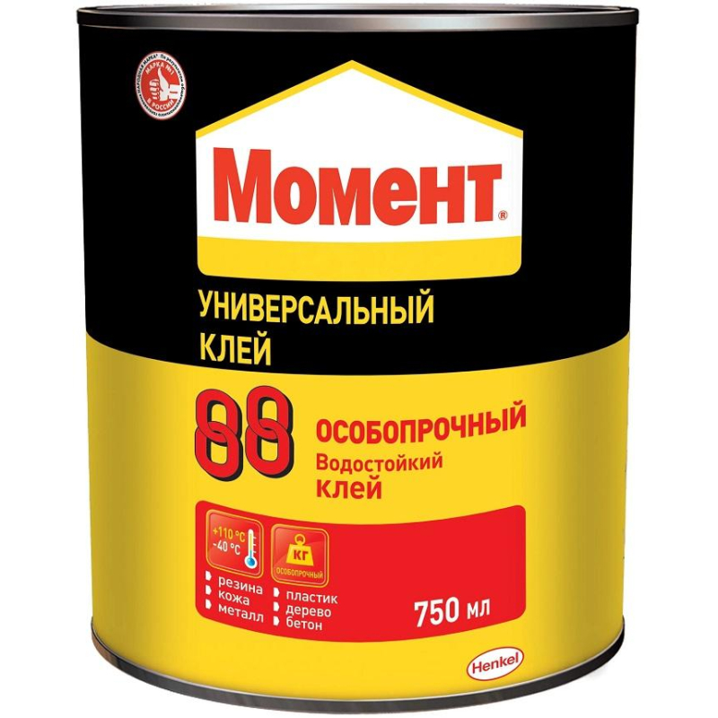 Клей универсальный Момент 88 особопрочный водостойкий 750 мл — отличное решение для повышенных требований. Это универсальный контактный клей, устойчивый к воздействию воды, мороза, старению и гарантирующий высокую прочность склеивания.Области применения:Склеивание в различных комбинациях резины, кожи, металлов, пластиков, дерева, пробки, ткани, картона, стекла, бетона. Не пригоден для склеивания стиропора, полиэтилена, полипропилена, пластифицированного ПВХ. Срок годности 24 месяца.Внешний вид и/или характеристики товара могут быть изменены производителем в соответствии с производственным процессом.