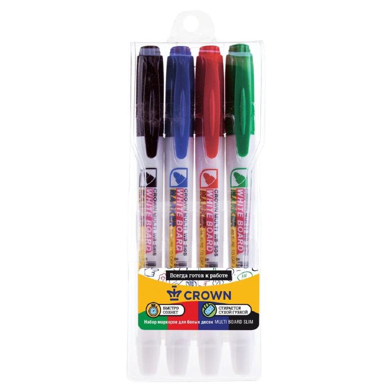 Набор маркеров Crown Multi Board Slim предназначен для использования на досках с магнитно-маркерной и на других непористых поверхностях (стекло, фарфор, пленка и пр.). Тонкий корпус удобно лежит в руке у ребенка. Благодаря особому строению пишущего узла чернила дозированно поступают на поверхность, не вытекают из наконечника и не образуют клякс. Чернила на спиртовой основе высыхают на поверхности доски в течении 1-2 секунд. Маркер до 2 дней не высыхает без колпачка, а при закрытом колпачке в течении одного часа полностью восстанавливает свои свойства! Прочный фибровый наконечник не западает в корпус и сохраняет форму на протяжении всего срока службы маркера. След от маркера легко удаляется сухой губкой. Пулевидный наконечник позволяет наносить яркие и однородные линии толщиной 2 мм. Количество в наборе: 4 цвета. Цвет чернил - зеленый, синий, черный, красный.