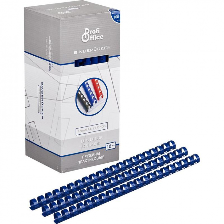Пружины для переплета пластиковые ProfiOffice 16 мм синие (100 штук в упаковке)