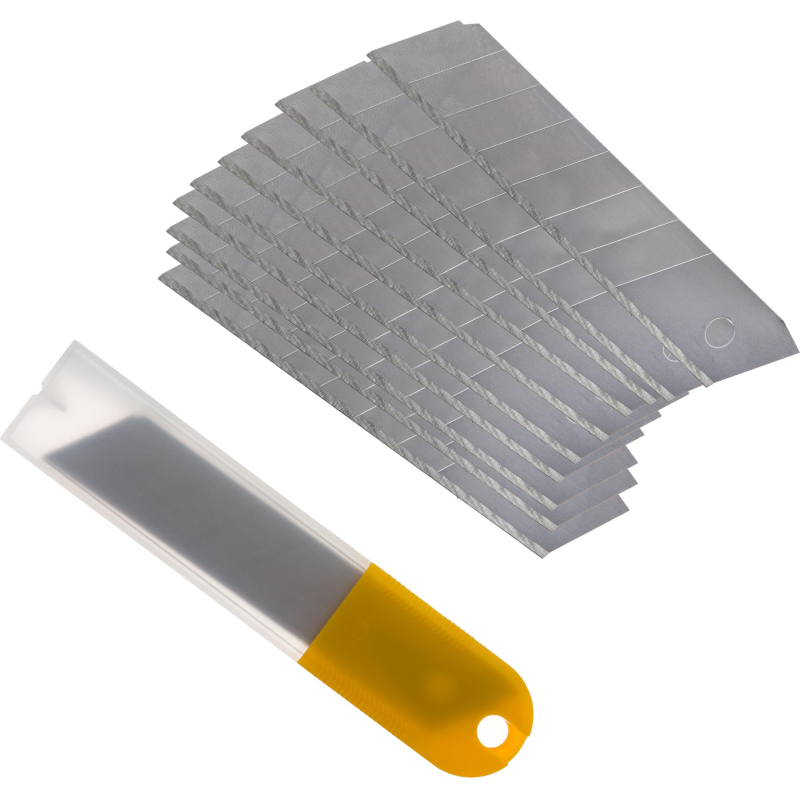 Набор запасных сегментированных отламывающихся лезвий Attache Selection. Используются для резки широкого спектра материалов: напольных покрытий, ткани, бумаги, кожи, пленки и т.п. Особенности изделия: - Лезвия из инструментальной углеродистой стали SK5 - Подходят для ножей шириной 25,0 мм - Лезвия изготовлены с технологией лазерной заточки, позволяющей создавать ровную и прочную режущую кромку - В комплекте 10 шт. Характеристики изделия: - Ширина лезвия 25,0 мм - Толщина лезвия 0,7 мм - Количество рабочих сегментов 7 шт. Меры предосторожности: - При работе с лезвиями используйте средства защиты - Не утилизируйте лезвия с бытовыми отходами - Хранить в недоступном для детей месте