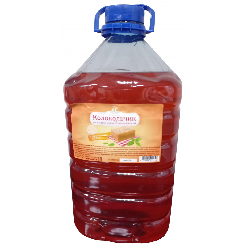 Мыло жидкое Колокольчик Душистый хозяйственное 5 л. Предназначено для очистки любых видов поверхностей, уборки помещений, мытья посуды, стирки белья и т. д.