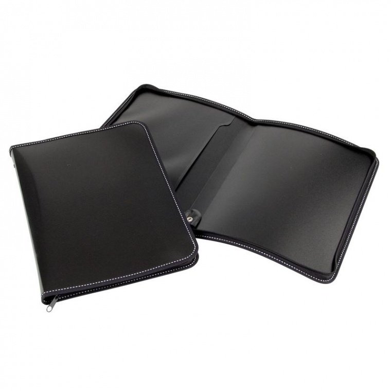 Папка-конверт Attache формата А4 изготовлена из непрозрачного пластика 0,5 мм с тиснением горизонтальные линии. Папка с трех сторон закрывается на молнию. Имеет внутренний полиэтиленовый карман. Вместимость 250 листов стандартной плотности. Размер: 336×240×25 мм, расширение 25 мм. Цвет — черный.
