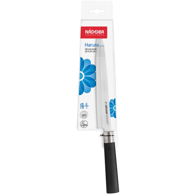 Стильный японский дизайн сочетает в себе практичность и элегантность. Нож Nadoba Haruto - многоцелевой и практичный нож, изготовленный из высококачественной нержавеющей стали, благодаря высокому содержанию углерода и специальной термообработке обладает высокой твердостью и значительной коррозионной износостойкостью. Толщина лезвия обеспечивает высокую прочность, хороший баланс, удобство и безопасность. Пятигранный профиль лезвия идеально сбалансирован, для наибольшей прочности клинка и легкого качественного реза. Ручка ножа выполнена из высокопрочного пластика устойчивого к механическим воздействиям, а также обладаем гигиеническими свойствами благодаря гладкой поверхности и отсутствию пор. Можно мыть в посудомоечной машине. Стильный японский дизайн. Длина лезвия: 21 см.