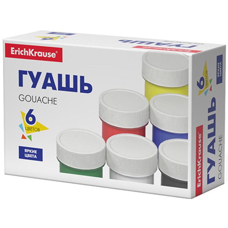 Гуашь ErichKrause. Рисунки, выполненные такими красками, дольше сохраняют сочные цвета. Гуашь обладает насыщенными плотными цветами с высокой укрывистостью, при рисовании ровно ложится на бумагу и быстро высыхает, после высыхания рисунок приобретает матово-бархатистую поверхность. Безопасная гуашь ErichKrause на водной основе, легко смывается с рук и отстирывается с большинства видов ткани и бытовых поверхностей, она не токсична, изготавливается из экологичных материалов. Размер упаковки 109x74x40 мм. Поставляется в отдельной пластиковой тубе, объем по 17 мл. В набор входят 6 цветов: белый, желтый, красный, зеленый, синий, черный.