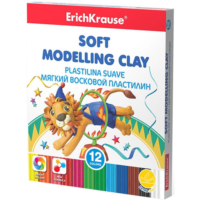 Мягкий восковой пластилин ErichKrause имеет мягкую консистенцию и особую пластичность, что делает его отличным инструментом для развития мелкой моторики у малышей и дошкольников. Пластилин не требует предварительного разминания, не застывает на воздухе, а также не прилипает к рукам и не пачкает одежду. Цветовая палитра содержит яркие насыщенные цвета, которые отлично смешиваются между собой, создавая новые оттенки. Каждый брусок имеет отдельную упаковку flow-pack, которая надежно сохраняет товарный вид и пластичные свойства продукта. В комплекте для декорирования и моделирования прилагается стек, длиной 13.5 см. В набор входят 12 цветов: зеленый, белый, голубой, розовый, желтый, коричневый, оранжевый, черный, красный, сине-зеленый, синий, ярко-розовый. Размер упаковки 132x155x15 мм.