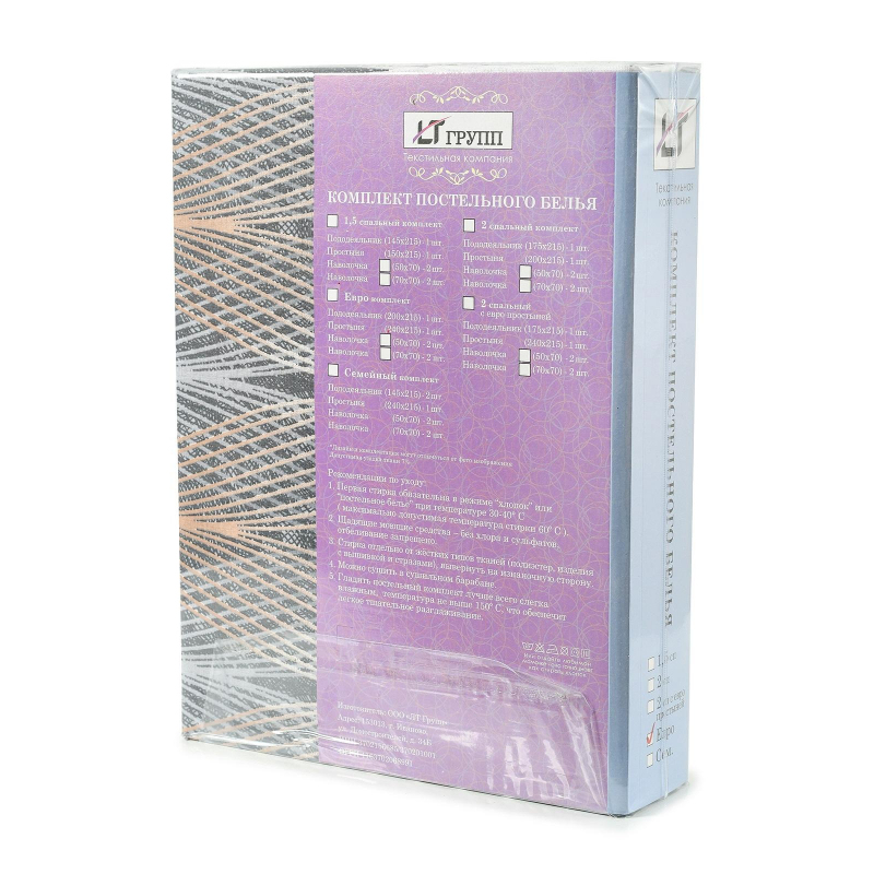 В комплект постельного белья входит: - простынь 200x215 см; - пододеяльник 175x215 см; - 2 наволочки 50x70 см. Комплекты постельного белья из бязи пользуются огромным спросом. Такое постельное белье очень прочное и долговечное. Бязь выдерживает многократные стирки, не мнется, приятная к телу и гипоаллергенна. Рекомендации по уходу: стирка обязательна в режиме "хлопок" или "постельное белье" при температуре 30-40 °С, без хлора и сульфатов, отбеливание запрещено. Стирка отдельно от жестких типов ткани.