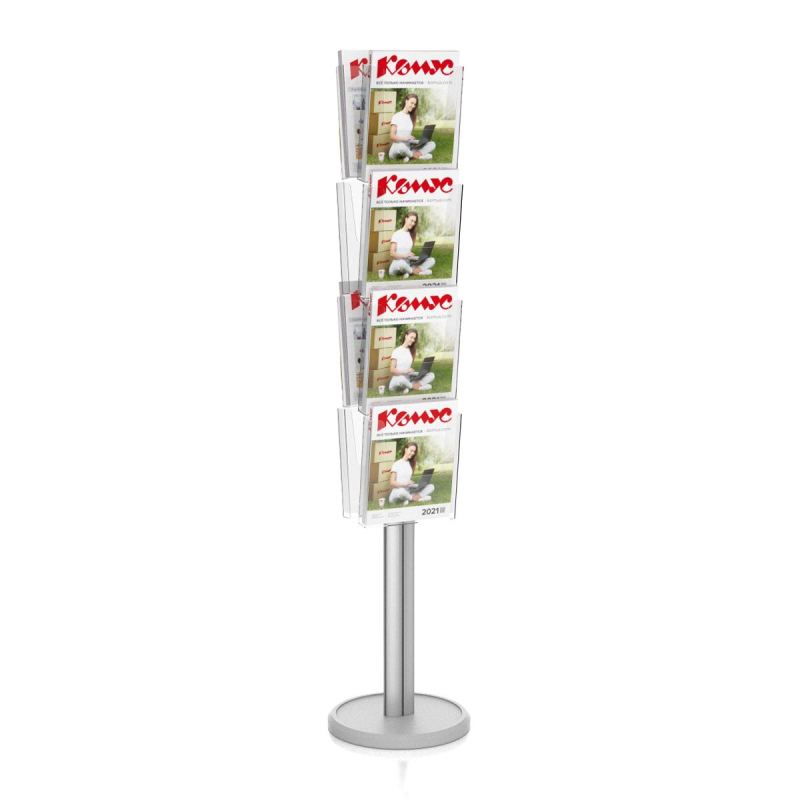 Стойка для каталогов и буклетов "Волна" с 8 карманами формата А4 на устойчивом основании из композитного материала, алюминиевый 2-канальный профиль. Может быть использована на выставках и в офисных помещениях для размещения печатной информации. Размер стойки: 300x1525 мм.