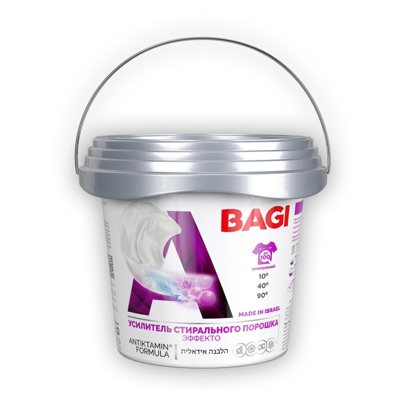 Концентрированный усилитель стирального порошка для светлых и цветных тканей. Удаляет сложные трудновыводимые пятна и застарелые загрязнения. Многократно усиливает действие стирального порошка. Эффективно удаляет сложные органические и белковые загрязнения (чай, молоко, кофе, кровь, ягоды, сок, вино и т.д.). Отбеливание: быстро и без усилий возвращает белоснежный оттенок посеревшим волокнам. Не содержит агрессивные ПАВ, хлор, SLS/SLES, искусственные красители и ароматизаторы. Легко выполаскивается с первого раза, без запаха на сухом белье. Идеально подходит для всех видов ткани, кроме шелка, шерсти, пуха и мембранных тканей. Содержит специальные компоненты, которые предотвращают появление накипи на водонагревательных элементах. Способ применения: При использовании усилителя дозировку стирального порошка следует уменьшить в 2 раза. Используйте в качестве дозатора мерную ложку. 1 мерная ложка = 30 г. Соблюдайте режим и температуру стирки, указанные на ярлыке одежды. Для машинной стирки: добавьте усилитель вместе со стиральным порошком в выдвижной отсек стиральной машины: для удаления свежих загрязнений - пакета; для удаления трудновыводимых пятен и застарелых загрязнений - 1 ложку. Для ручной стирки: добавьте усилитель вместе со стиральным порошком в воду: 1/2 пакета на 10 л воды (при температуре 40-60 градусов). Для замачивания: добавьте в воду усилитель вместе со стиральным порошком: 2 ложки на 10 л воды, полностью растворите (при температуре 40-60 градусов). Поместите одежду/белье, оставьте на 2 часа. После этого постирайте как обычно и хорошо прополоскайте. Для предварительной обработки пятен: смешайте 1/2 чайной ложки усилителя с 1/2 чайной ложки воды, размешайте до получения пасты. Нанесите на пятно и оставьте на 5 минут. При необходимости потрите пятно. После предварительной обработки стирайте как обычно. Не допускайте высыхания усилителя на ткани. Для получения лучшего результата используйте порошки для стирки BAGI. Не насыпайте средство непосредственно на белье. Подходит для всех типов ткани, кроме изделий из шерсти, шелка, пуха и мембраны. Меры предосторожности: Осторожно! При попадании в глаза вызывает раздражение. После работы тщательно вымыть руки. В случае попадания в глаза немедленно и осторожнопром##ть большим количеством воды. В случае ношения контактных линз аккуратным способом удалить и продолжить промывание. При случайном проглатывании запить большим количеством воды и немедленно обратиться к врачу. Лицам с повышенной чувствительностью кожи применять резиновые перчатки. Средство не теряет своих свойств при замерзании и последующем размораживании. Беречь от детей! Хранить в закрытом виде в сухом, прохладном и темном месте, вдали от пищевых продуктов. Утилизировать как бытовые отходы. Состав: карбонат натрия >30%; перкарбонат (не менее 5%, но не более 15%); неионогенные ПАВ