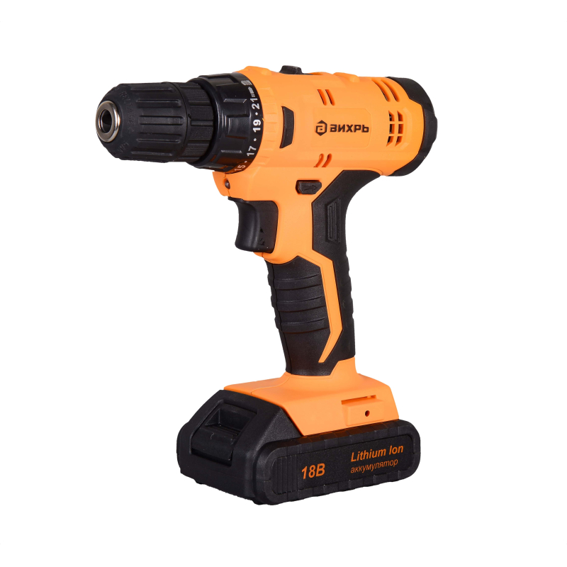 Дрель-шуруповерт аккумуляторная ВИХРЬДА-18Л-2КА — незаменимый помощник мастера в ремонте или строительстве. Прибор аккуратно сверлит отверстия на поверхностях из дерева и металла, а также накрепко закручивает шурупы. В комплект к дрели-шуруповерту поставляется удобный кейс, в котором можно хранить инструмент, зарядку к нему и другие рабочие детали. Не требует подключения к сети, что позволяет использовать ее в помещениях, где нет доступа к системе электропитания. Рабочие элементы легко заменить благодаря быстрозажимному патрону. Для ослабления креплений и выкручивания шурупов есть обратный ход. Форма рукоятки удобная, с резиновыми вставками, не скользит в руке. Система охлаждения мотора за счет вентиляционных отверстий на корпусе. Модель работает от надежного литий-ионного аккумулятора (Li-Ion).Особенности серии:-Самая низкая цена на рынке.-Аналог обычных шуруповертов Вихрь, в бюджетном исполнении при схожих параметрах.-Более простая комплектация по сравнению со стандартной серией.-Емкость аккумулятора 1,5 Аxч.Преимущества:— Легкий вес и прорезиненная ручка обеспечивает комфортную работу даже при длительном использовании шуруповерта;— Возможность регулировки крутящего момента позволяет использовать шуруповерт для работы практически с любым материалом (дерево, металл, пластмасса);— Быстрозажимной патрон позволяет легко и быстро менять биты или сверла;— Наличие кейса позволяет хранить в безопасности шуруповерт, а также облегчает его транспортировку;— Система защиты аккумулятора от перегрузок/замыканий;— Металлический редуктор;— Эффективная вентиляция двигателя;— Тормоз двигателя — мгновенная остановка при опускании клавиши пуск.Кроме того, литий-ионный аккумулятор имеет ряд преимуществ:— не имеют 'эффекта памяти', а значит могут заряжаться из любого состояния;— обладают минимальной способностью саморазрядки;— имеют значительную емкость;— обладают троекратным превосходством перед никель-кадмиевыми источниками питания по количеству циклов зарядки-разрядки;Внешний вид и/или характеристики товара могут быть изменены производителем в соответствии с производственным процессом.