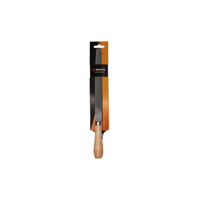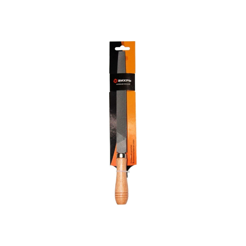 Напильник плоский ВИХРЬ - слесарный инструмент для опиливания различных поверхностей. Прочный и надежный, изготовлен из высококачественной стали. Напильник оснащен эргономичной деревянной рукояткой. Рабочая часть плоской формы в сечении. Длина напильника: 200 мм.