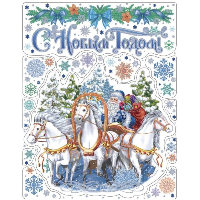 Украшение новогоднее оконное Лошади / 30х38см 86012
