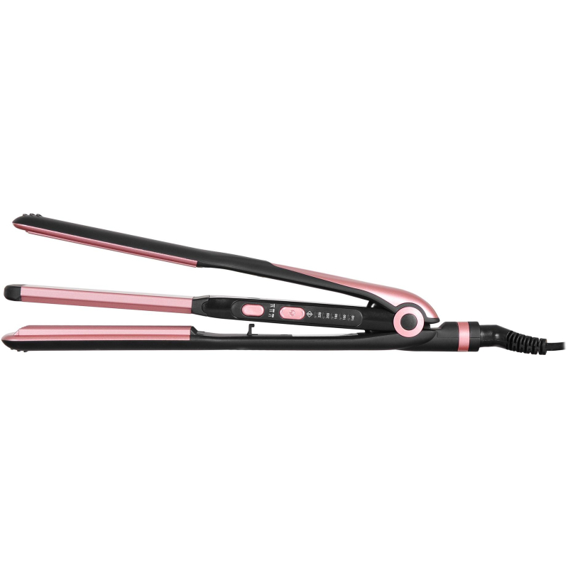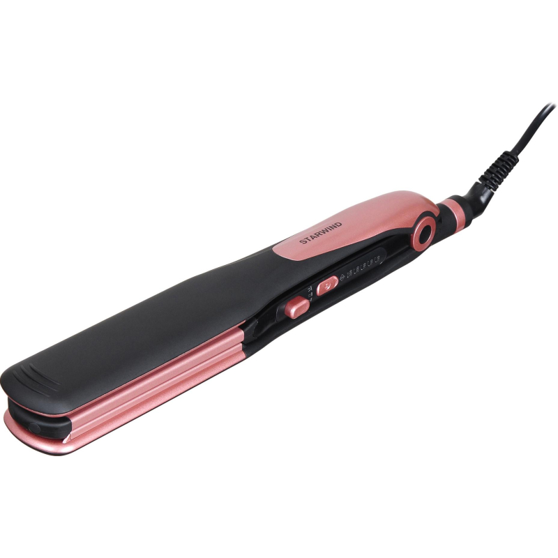 Выпрямитель Starwind SHC 7050 Привередливым модницам очень трудно угодить. Кудрявые мечтают о прямых и гладких волосах, имеющие прямые стремятся уложить их в послушные локоны. В этом случае производителю удалось удовлетворить желания и тех, и других. С помощью выпрямителя STARWIND SHC 7050 можно выполнить прическу любой сложности, даже не обладая парикмахерским образованием.В управлении все предельно просто. Выбираем необходимый режим, ставим подходящую насадку, включаем кабель питания в розетку и ждем нагрева прибора. Все происходит быстро, благодаря комфортной мощности. Затем делаем укладку на свой вкус. При этом волосы обрабатываются в щадящем режиме, не портятся, благодаря материалу, из которого изготовлены пластины. Они не прилипают, не дергают волоски, обеспечивают отличное скольжение. Результат не заставит себя долго ждать.Из преимуществ устройства можно отметить:защиту кончика щипцов от нагревания, что удобно в процессе эксплуатации - можно пальцами придерживать мультистайлер без риска обжечься;ручка не нагревается, устройство комфортно держать;пластины плотно примыкают друг к другу.Выпрямитель Starwind выполнен из качественного пластика. Кабель закреплен стационарно, защищен от перетирания и перегибов.Корпус выглядит очень стильно и гламурно. Цвет "розовое золото" достаточно необычный, но очень модный, черные акценты очень привлекательны. Такое цветовое решение непременно понравится представительнице прекрасной половины человечества.