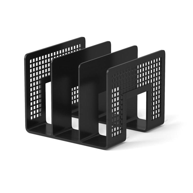 Настольная подставка для хранения документов, журналов и каталогов любого формата с возможностью тематической сортировки. Изготовлена из высококачественного пластика. Цвет: черный. Размеры: 207x212x168 мм. Вес: 480 г. В комплект не входят этикетки для маркировки.