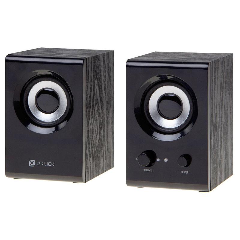 Колонки OKLICK OK-160 акустического типа 2.0 используются для оснащения ПК или ноутбука. Они обеспечивают качественное звучание и могут быть использованы как для просмотров фильмов и прослушивания музыки, так и для отдыха в видеоиграх. Стильный внешний вид Передняя панель выполнена из черного пластика с регулятором громкости и кнопкой включения серебристого цвета. Боковые стенки корпуса изготовлены из МДФ и оформлены под дерево. Устройство подключается к аудиовыходу на компьютере с использованием разъема Jack 3.5 мм. Технические особенности Небольшие колонки имеют динамики диаметром 57 мм мощностью по 3 Вт каждый, при этом работают они в диапазоне 150 Гц-20 кГц. Модель функционирует как от сети, так и от порта USB. Товар относится к ценовому сегменту "бюджет". Имеет базовые характеристики и более простую упаковку. Отвечает основным требованиям потребления.