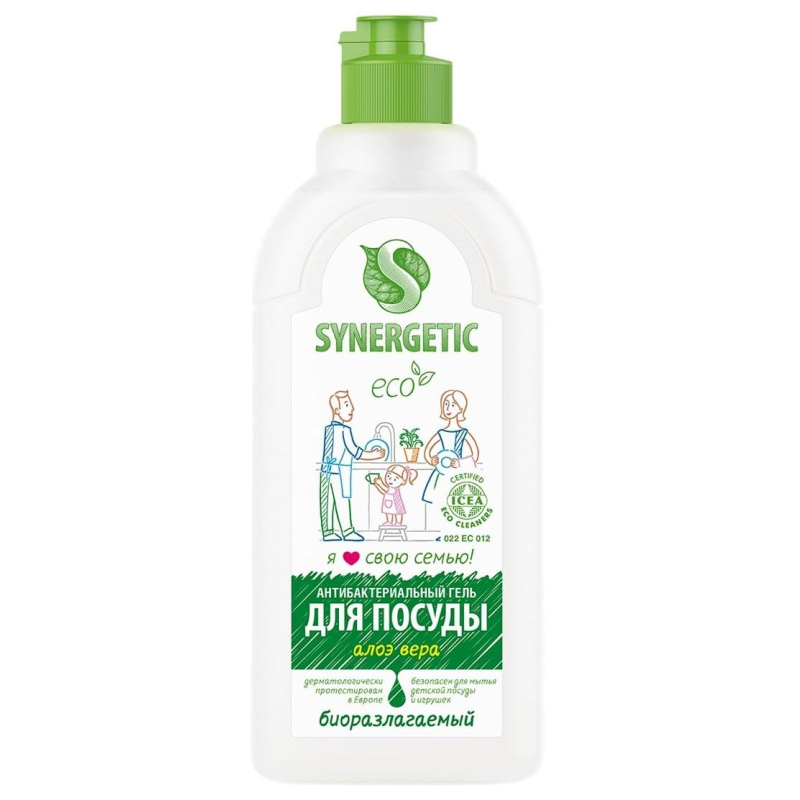 Средство для мытья посуды Synergetic Антибактериальное Алоэ Вера 500 мл. Назначение Концентрированный антибактериальный гель для посуды Synergetic - это экологичное, безопасное и эффективное средство для мытья посуды, фруктов и овощей. Гель полностью смывается водой и подходит для мытья детской посуды, сосок, бутылочек и игрушек. Устраняет жир и запахи с посуды даже в холодной воде благодаря синергетическому сочетанию компонентов. Мягкие биоразлагаемые тензиды, полученные из растительного масла, удаляют органические загрязнения с посуды и обеспечивают хорошее пенообразование. Гель для посуды содержит гипоаллергенные отдушки на основе эфирных масел, поэтому подходит даже для людей с чувствительной кожей рук. Натуральный растительный глицерин в составе геля защищает кожу рук от сухости и раздражения. Аппликационные тесты, проведенные международным агентством ICEA, подтверждают отсутствие раздражающего эффекта на кожу человека. Гель для посуды Synergetic сертифицирован в Итальянском институте этической и экологической сертификации ICEA и имеет международный сертификат, подтверждающий биоразлагаемость, безопасность и эффективность средства. Способ применения. Нанести средство на очищаемую поверхность, вымыть поверхность, ополоснуть водой. При приготовлении моющего раствора используйте 5 мл средства на 5 л воды. Меры предосторожности При попадании в глаза, промыть водой. Только для наружного применения. Оберегать от детей и животных. Хранить отдельно от еды. Состав: подготовленная вода > 30%; А-тензиды (ПАВ из растительного масла) 5-15%; Н-тензиды (ПАВ из растительного масла) 5%; глицерин растительного происхождения 5%; гипоаллергенная парфюмерная композиция "Алоэ" на основе эфирных масел аира, гальбанума, мяты, шалфея, лемонграсса, муската. Условия хранения Хранить при температуре не выше 45°С. Средство замерзает, после расмораживания и перемешивания сохраняет свои свойства. Срок годности: 24 месяца с даты производства при соблюдении условий хранения.