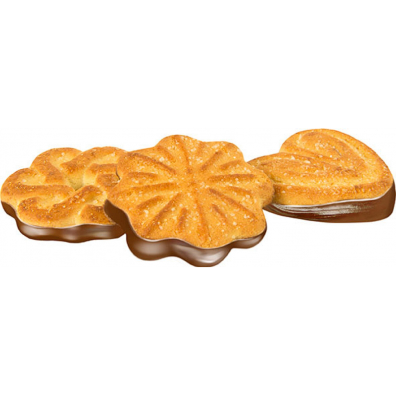 Классическое сахарное печенье со вкусом топленого молока. Печенье с глазированным дном. Состав: мука пшеничная, сахар, заменитель масла какао нетемперируемый лауринового типа (рафинированное дезодорированное гидрогенизированное фракционированное пальмоядровое масло, эмульгаторы: сорбитан тристеарат, соевый лецитин), жир кондитерский (рафинированные дезодорированные масла в натуральном и модифицированном виде (пальмовое и его фракции, подсолнечное, соевое), эмульгаторы: моно- и диглицериды жирных кислот, лецитин соевый, ароматизатор, краситель бета-каротин, антиокислители: аскорбиновая кислота, альфа-токоферол), какао-порошок, крахмал кукурузный, сыворотка молочная сухая деминерализованная, разрыхлители: гидрокарбонат натрия, гидрокарбонат аммония; соль пищевая, эмульгатор лецитин соевый, ароматизаторы, краситель куркумин, меланж яичный сухой, регулятор кислотности кислота молочная. Может содержать диоксид серы. Пищевая ценность: белки - 7 г, жиры - 20 г, углеводы - 65 г. Энергетическая ценность: 460 ккал. Хранить при температуре (18+5)°C и относительной влажности воздуха не более 75%.